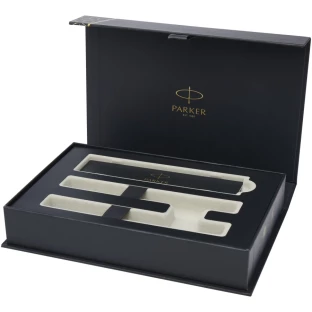 Dodatkowe informacjeDwuczęściowy zestaw upominkowy składający się z pióra wiecznego z niebieskim tuszem i pióra kulkowego z czarnym tuszem. Zapakowane w pudełko upominkowe